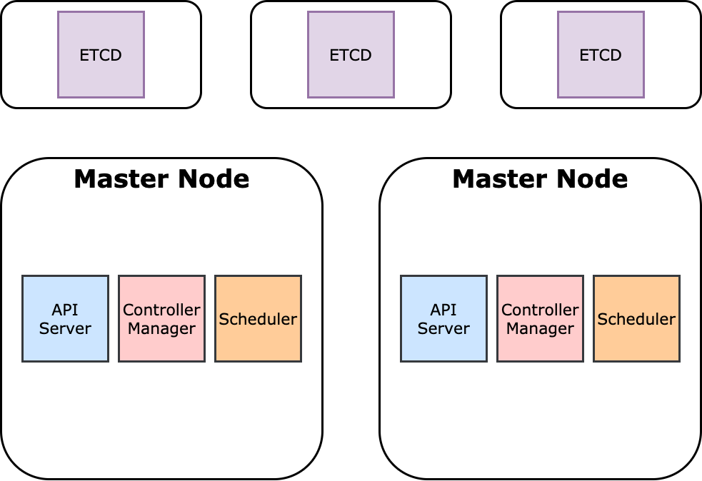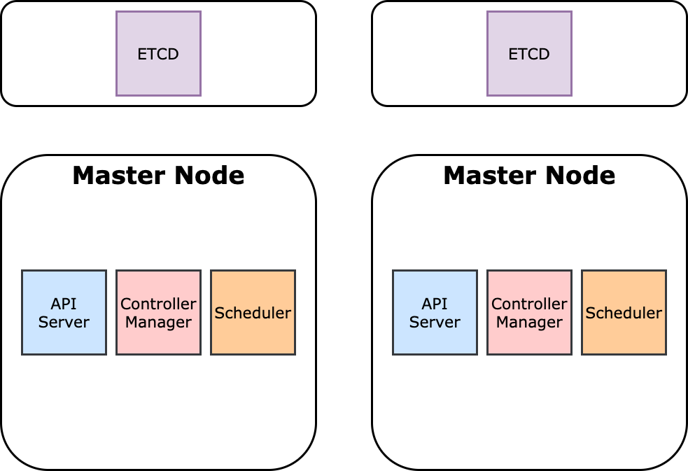 The best way is to set 3 ETCDs and 2 Master nodes at least.